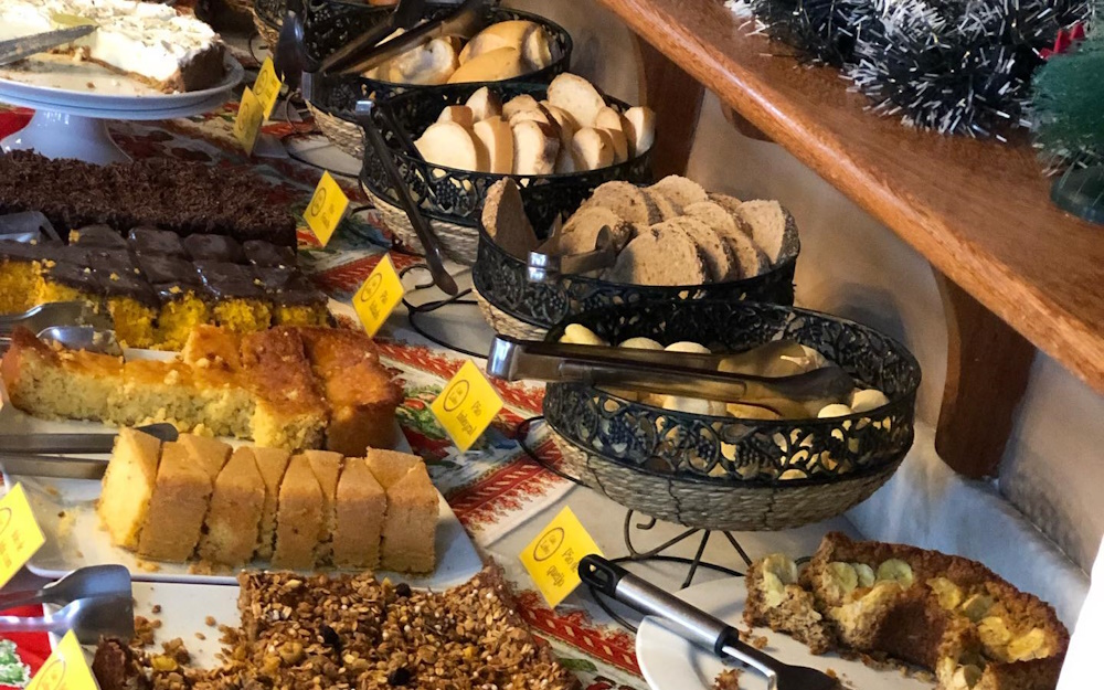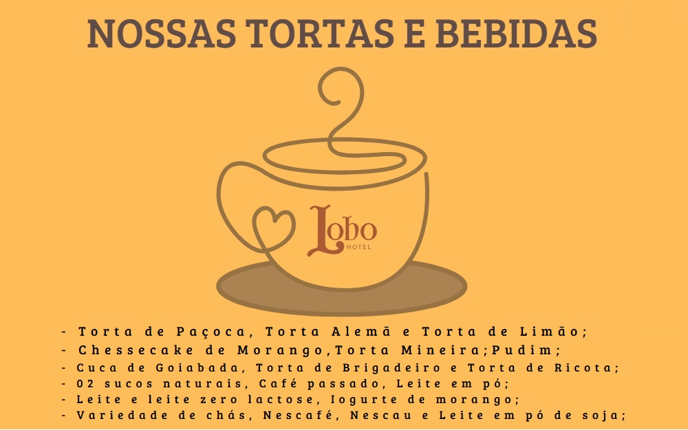 "Nossos bolos, salgados e tortas são de fabricação própria."